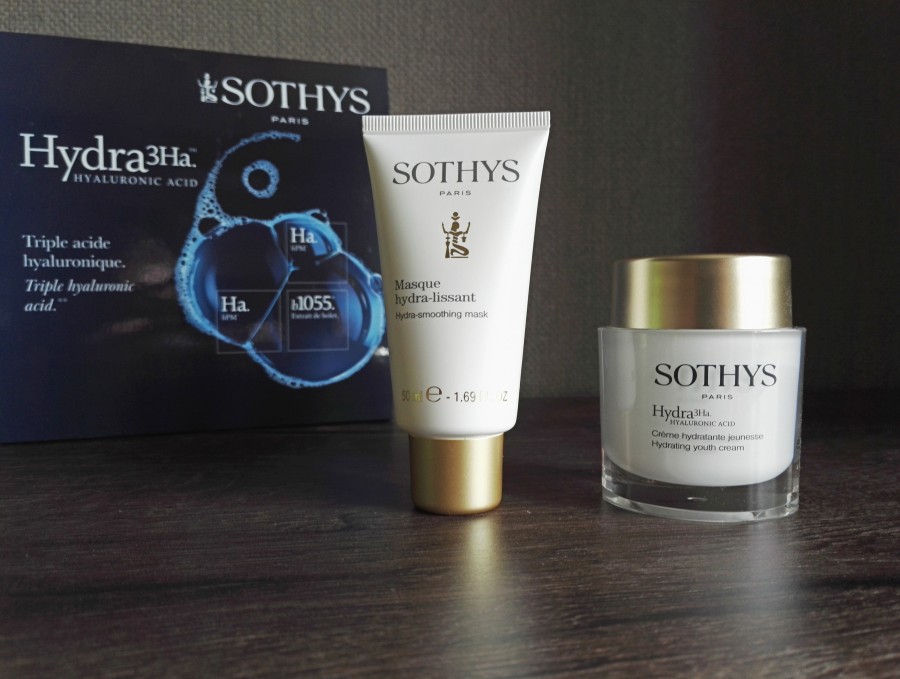 Sothys produktus lieto ne vien profesionāļi dažādās skaistumkopšanas procedūrās, bet tiek piedāvāta arī kosmētika lietošanai mājās ikvienam no mums. Es esmu iepazinusies ar diviem profuktiem no Hydra3Ha™ programmas ar hialuronskābi - Hydra3Ha™ Hydrating youth sejas krēmu un Hydra-Smoothing masku. Tā ir atjauninošas mitrināšanas programma, kas pēc saulainās un karstās vasaras, kad āda kļuvusi sausa sniedz tai tūlītēju mitrināšanu. Šajā inovatīvajā programma iesaistīta trīskārša hialuronskābe: