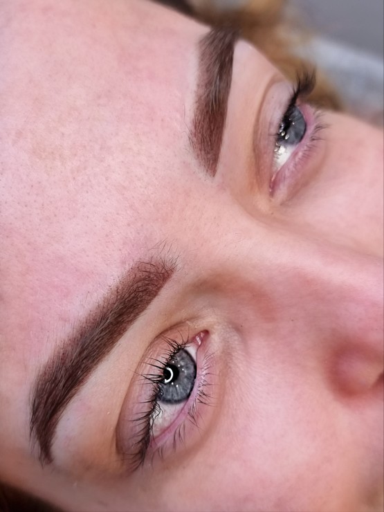 Uzacu permanentais meikaps pūdertehnikā uzreiz pēc procedūras.