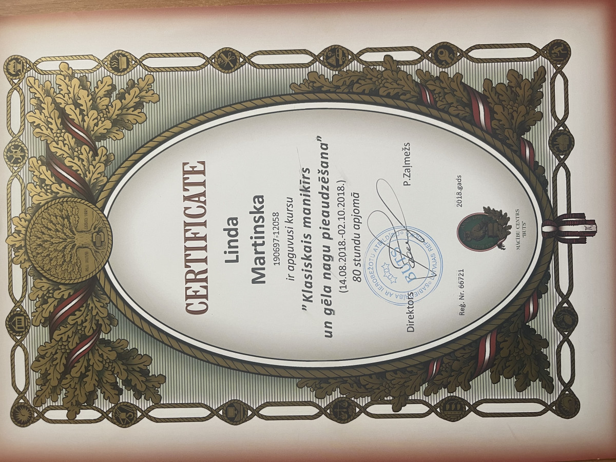 Lieliska komunikācija, laipna un draudzīga attieksme, speciālists, kurš sadzird klienta vēlmes, un vajadzības gadījumā palīdzēs izvēlēties nagu formu, toni un dizainu! Ar lielāko prieku atgriežos pie meistarītes Lindas atkal un atkal. Noteikti iesaku!?