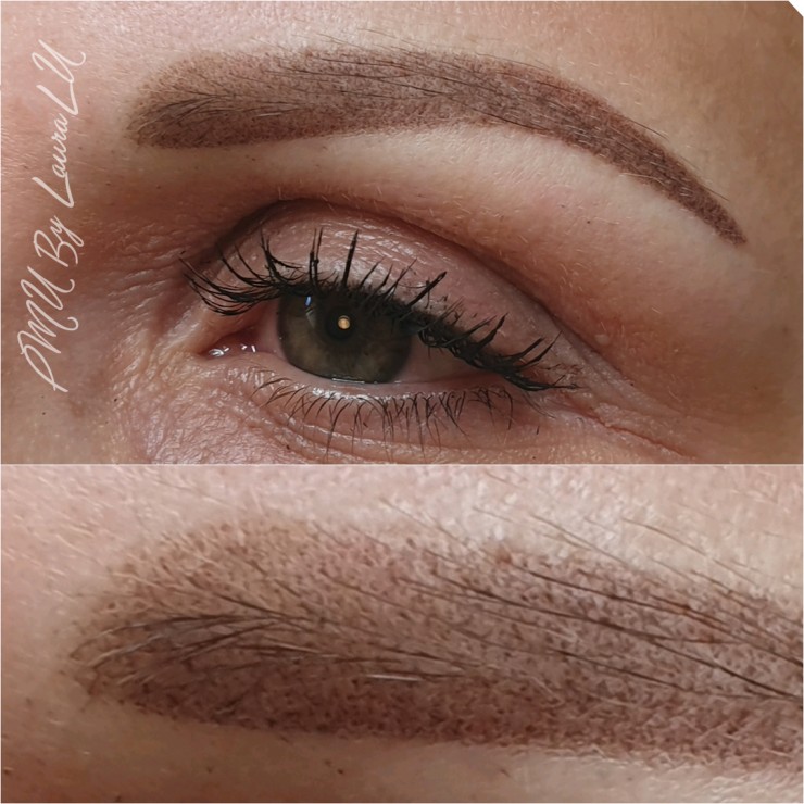 Uzacis pūdertehnikā uzreiz pēc mikropigmentācijas procedūras.
