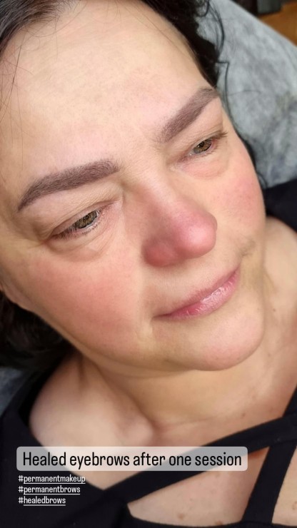 Sadzijušas uzacis - mēnesi pēc pirmreizējās procedūras.