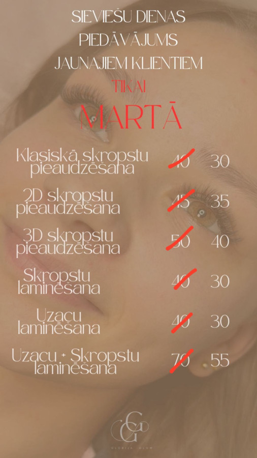 € -10 eiroAicinu Marta mēnesī jaunos klientus uzplaukt kopā ar skaisto pavasari. Jauniem klientiem TIKAI Martā procedūru cenas samazinātas PAR 10 EIRO! Pieraksties un rezervē sev vēlamo laiku jau tagad! Tiekamies jau pavisam drīz