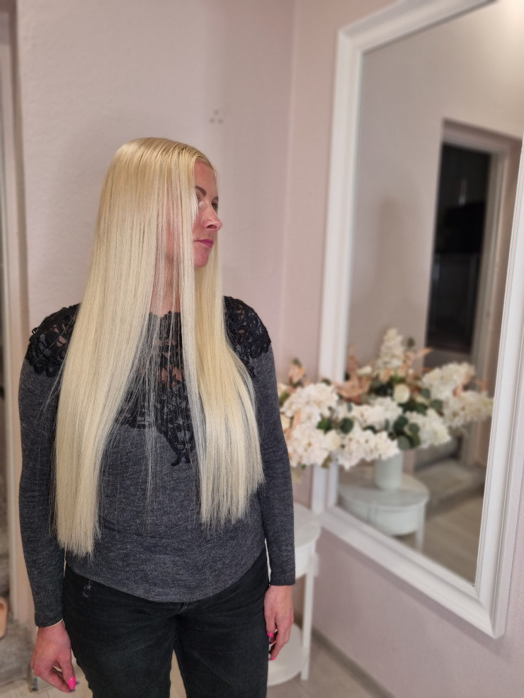 Matu pagarināšana pat uz ļoti īsiem matiem. Uz vietas pieejami slāvu mati.
