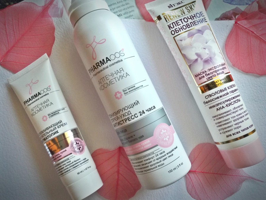 Iepazīstināšu ar 3 kosmētikas produktiem, ko izmēģināju. No PharmaCos līnijas, kas tiek pozicionēta kā aptieku kosmētika, izmēģināju PharmaCos nomierinošu barojošu krēmu un Antistress 24h tonizējošu spreju. Sērijā ReNEW Skin notestēju masku - eksfoliantu nevainojamai sejas krāsai.