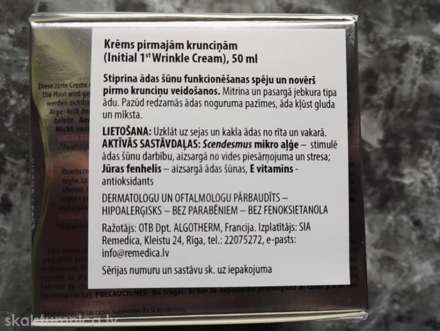 Šeit vairāk informacijas par krēmu https://medicinaspreces.lv/produkts/skaistumkopsanai-higienai/algotherm-juras-augu-kosmetika-2/algotime-control-adas-priekslaicigu-novecosanos-kavejosi-produkti-2/algotherm-algotime-control-krems-pirmajam-kruncinam-initial-1st-wrinkle-cream-50-ml/