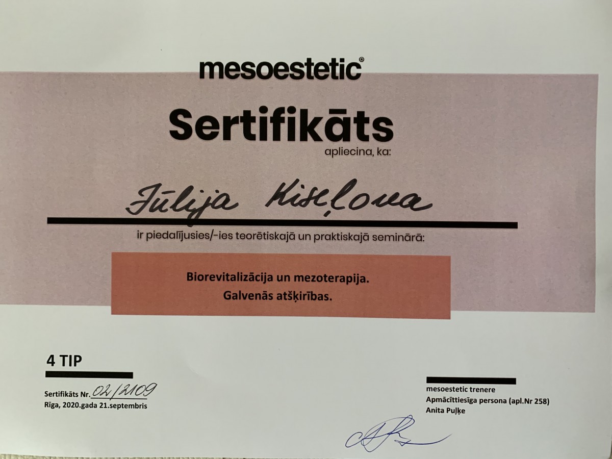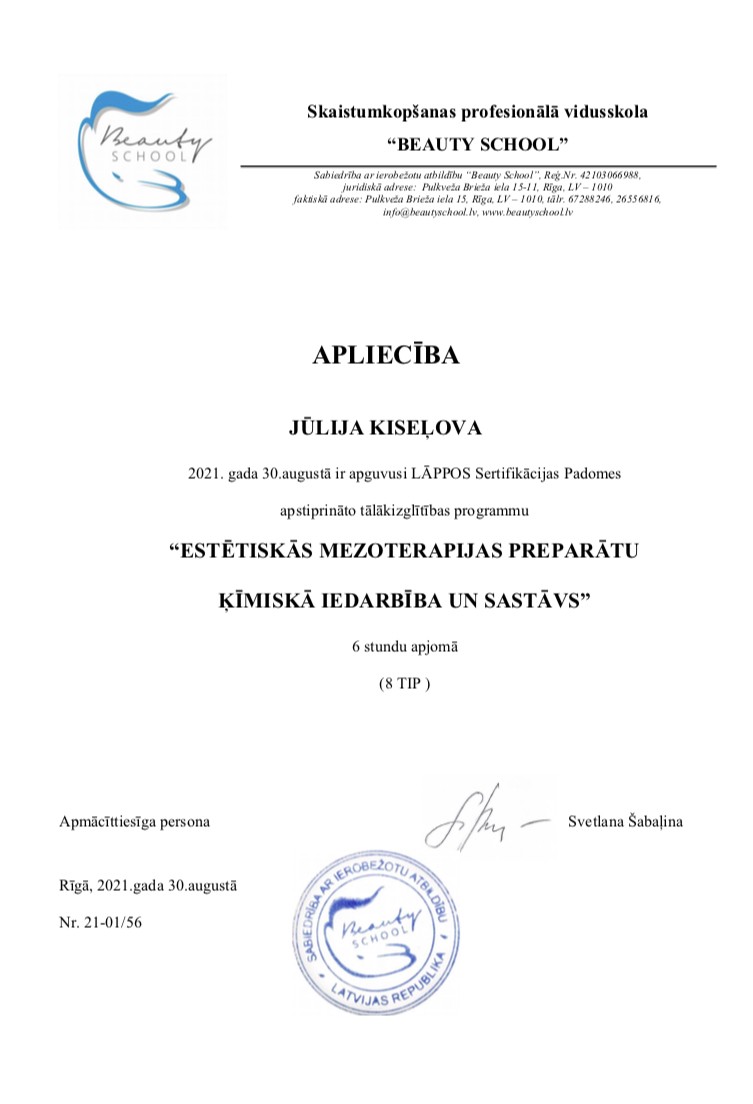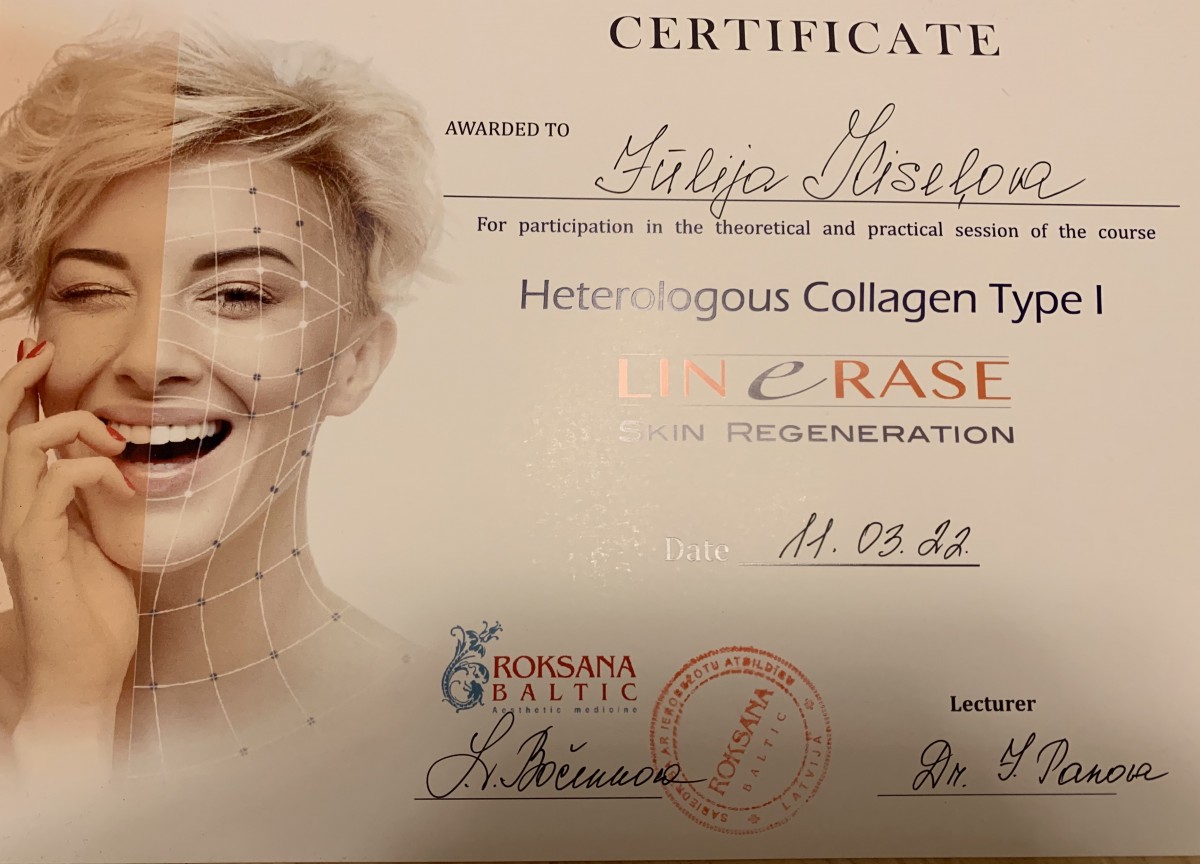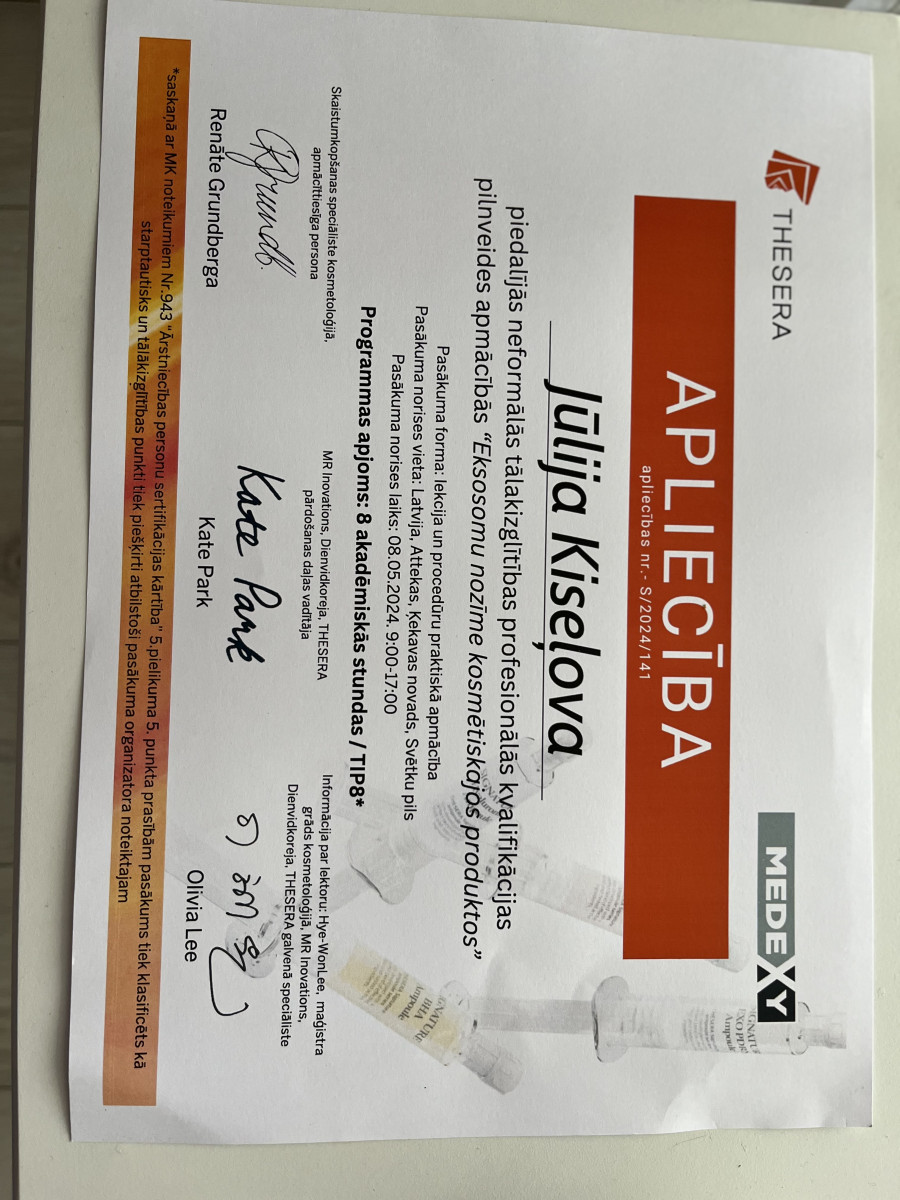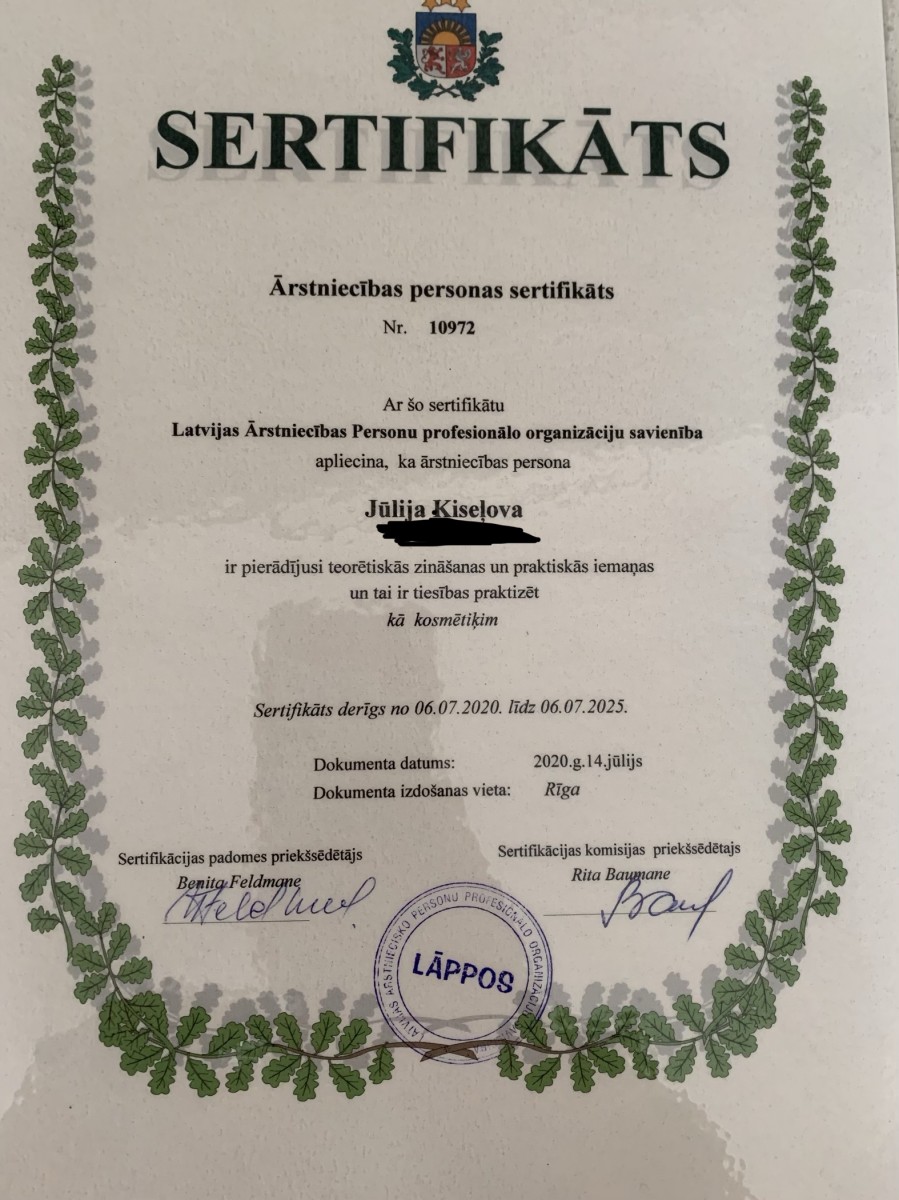 Strādāju tikai ar sertificētiem preparātiem un kvalitatīvu kosmētiku.