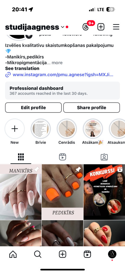 Sveiki! Piedāvāju Manikīru, pedikīru‼️ Ieskaties instagram, kur vari laimēt BEZMAKSAS manikīru un kosmetologa apmeklējumu!?☺️ No gēllakas ar stiprinājumu līdz gēla, poligēla nagu pieaudzēšanai, profilaksei un remontam. -sterili, vienreiz lietojami materiāli -liela toņu un dizainu izvēle -ātra darba izpilde ?-Pretī Duntes “SKY&More” Bezmaksas parking apkārtnē Ērta sabiedriskā transporta kustība Cenas sākot no 30.00eur Vairāk darbu, cits info apskati instagram- @studijaagness Brīvie laiki: 31.03. 13:00,15:00,17:00 1.04. 11:00,13:00,15:00,17:00 2.04. 9:00,11:00,13:00,15:00 3.04. 8:00,10:00,12:00,14:00,16:00 6.04. 13:00,15:00,17:00 7.,9.04. 8:00-19:00 8.04. 13:00-19:00 10.04. 8:00,10:00,12:00,14:00 13.04. 10:00,15:00, 17:00 14.04. 8:00,11:00,13:00,15:00,17:00 15.,16.04. 8:00-19:00 17.04. 9:00,11:00,13:00,15:00,17:00 22.04. 10:00-18:00 23.04. 8:00-19:00 24.04. 10:00,15:00 27.,28.04. 9:00-19:00 28.04. 8:00-19:00 29.04. 12:00,14:00,16:00,18:00 30.04. 12:00,14:00,16:00,18:00 #gēlanagupieaudzēšana #gēlanaguprofilakse #gēlanagupieaudzēšanarīga #gelanagudizains #manikīrsrīgā #skaistinagi #manikīrameistarsrīga #manikīrsrīgā #manikīrscentrā #manikirscentrs #gēlanagirīgā #gelanagicentrs #gēllakasmanikīrs #manikīrameistarsrīga #frenchnails? #skaistinagiriga #manikīrsSarkandaugava #gēlanagisarkandaugava