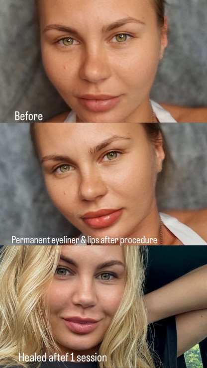 Starpskropstu līnija un lūpas Pierms - pēc procedūras - sadijušas