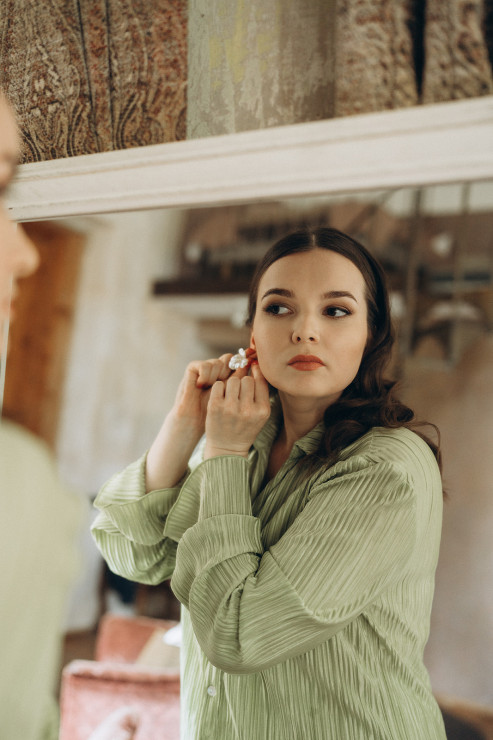 Līgaviņas gatavošanās kāzu dienā. Makeup un mati.