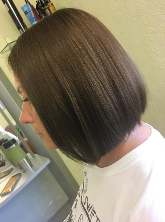 Matu krāsas dekapēšana. Matu krāsas korekcija un krāsošana.No tumši brūnas uz naturāli dabīgo matu toni.