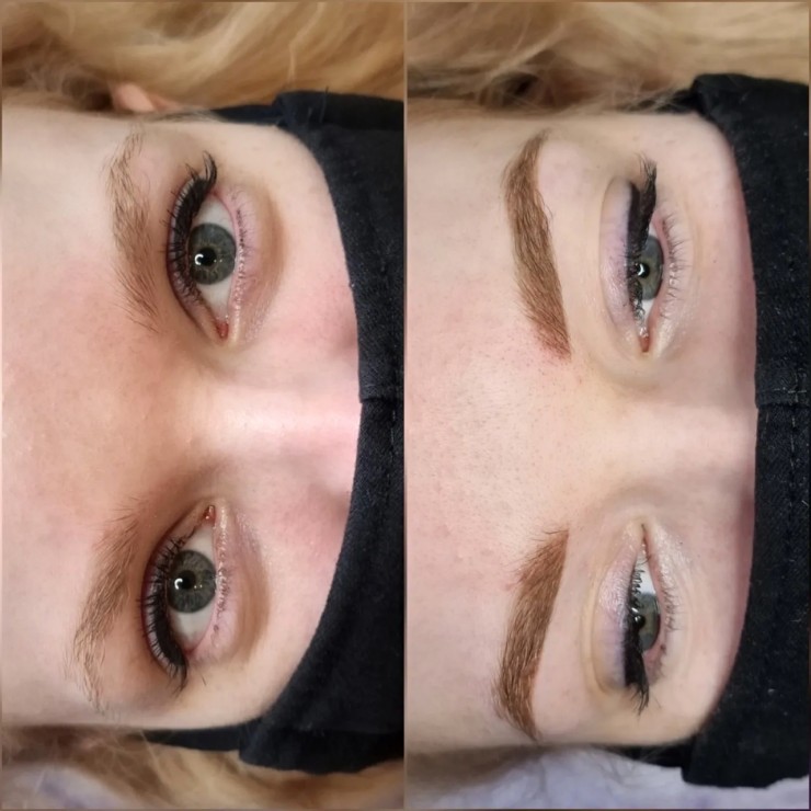 Uzacu permanentais meikaps izskatīsies skaisti un dabīgi arī blondīnēm - piemeklēsim atbilstošu tonīti, kas sadzīstot būs vel gaišāks un maigāks! Bilde - Pirms un uzreiz pēc procedūras #uzacupermanents #uzacis #brows #eyebrows #permanentasuzacis #permanent #permanentaisgrims #permanentaismeikaps #брови #бровирига #перманентбровей #перманентныймакияж #татуаж