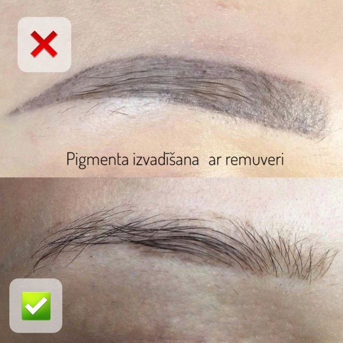 Pigmenta izvadīšana ar remuveri 30,-€ par vienu procedūru Pati procedūra (no 30 līdz 90 minūtēm). Kreveles veidošanās un izžūšana. Ilgst no 7 līdz 14 dienām. Dotajā posmā ir ļoti svarīgi sekot aprūpes noteikumiem pēc procedūras un nemēģināt paātrināt procesa gaitu: -Neslapināt apstrādāto zonu (ir pieļaujams īslaicīgs kontakts ar ūdeni, pēc kura uzreiz ir jānoslauc zonu ar salveti, un tad ļauj tāj pilnībā izžūt svaigā gaisā). -Nepieļaujiet kreveles mīkstinājumu! Tā nedrīkst palikt lipīga mitruma vai tvaiku iedarbības dēļ. -Pilnībā izvairīties no kontakta ar ziepēm vai šampūnu. -Izvairīties no mehāniskās iedarbības uz kreveli (nedrīkst bērzēt, skrāpēt, plēst nost kreveli), jo tas var palielināt rētu audumu izveides risku. Procedūru skaits ir individuāls. Ir jautājumi? Zvani - 25 866 550 Rīga, centrs, bezmaksas stāvvieta